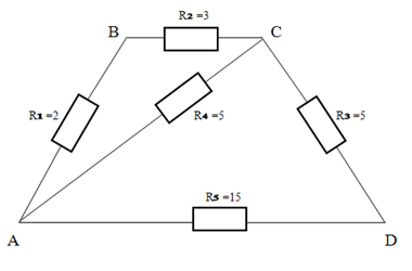 R3 = 5 Ом, R4 = 5 Ом, R5 = 15 Ом. Должен получится ответ 2 Ом.
