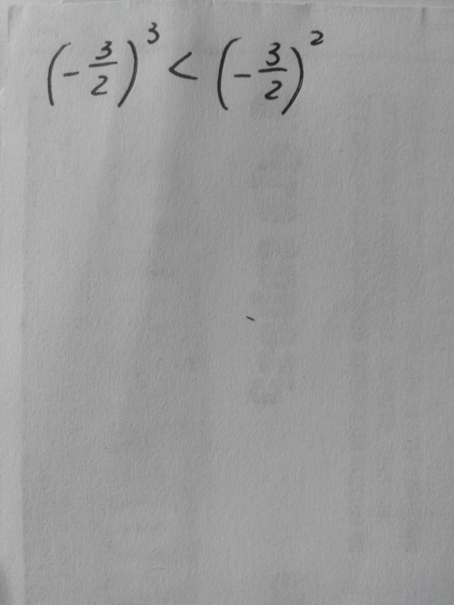 (-32)³ < (-3/2)² , так как отрицательное число в чётной степени даёт положительный результат , а в нечётной -отрицательный.Любое положительное больше отрицательного
