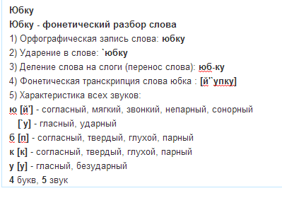 юбку-(й у б к у)-5 звуков,4 буквы.