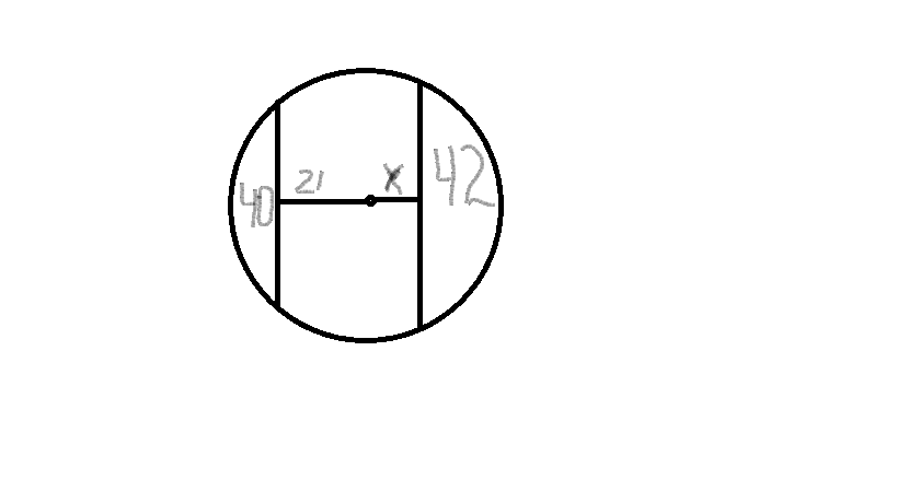 В окружности проведены 2 параллельные хорды длинной 42 и 40. расстояние от хорды длинной 40 до центра равно 21. найдите расстояние между хордой длинной 42 и центром окружности.