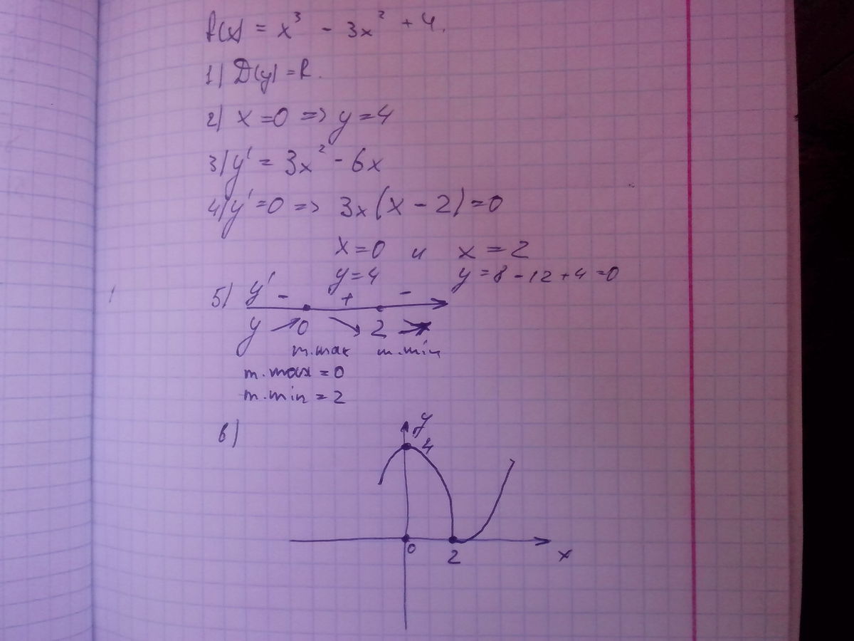 Исследуйте функцию f(х)=х^3-3х^2+4