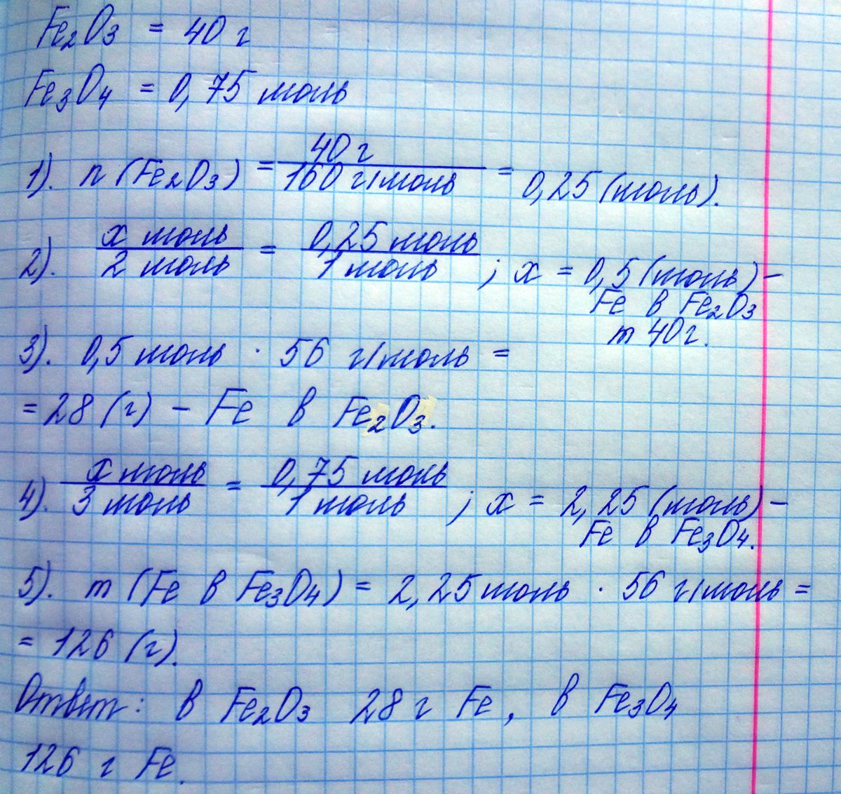 определите массу Феррума, которая содержится в смеси, которая состоит из 40 г феррум (III) оксида и 0,75 моль железной окалины