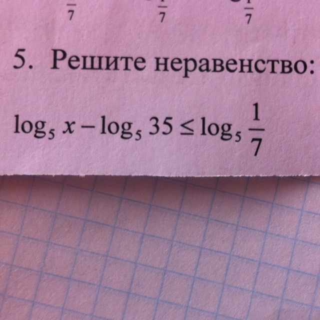 лог по основанию 5 х/35<=лог по основанию5 1/7, х/35<=1/7, x/35<=5/35, x<=5