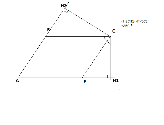 <ВAЕ=<BCE как противоположные углы параллелограмма. Углы СН1А и АH2С - прямые. <H2CH1=4*<BCE по условию. Подставим и перепишем:
