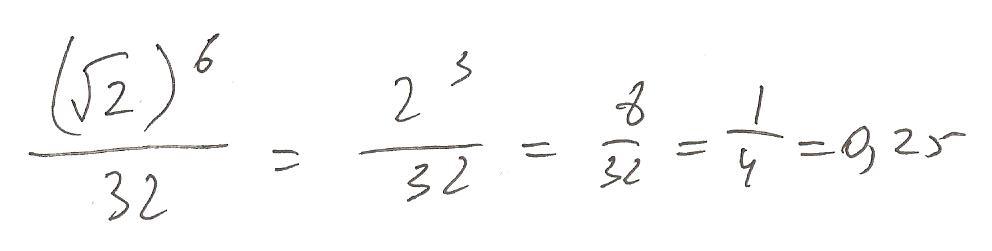В числители скобочка открывается из под корня два, скобочка закрывается, вся скобка в шестой степени, в знаменатели 32 ...