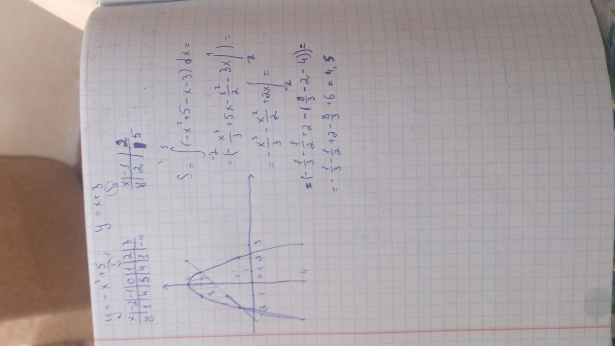 s=S(от -2 до 1)(-x²-x+2)dx=-x³/3-x²/2+2x(от -2 до 1)=-1/3-1/2+2-8/3+2+4=4,5кв ед