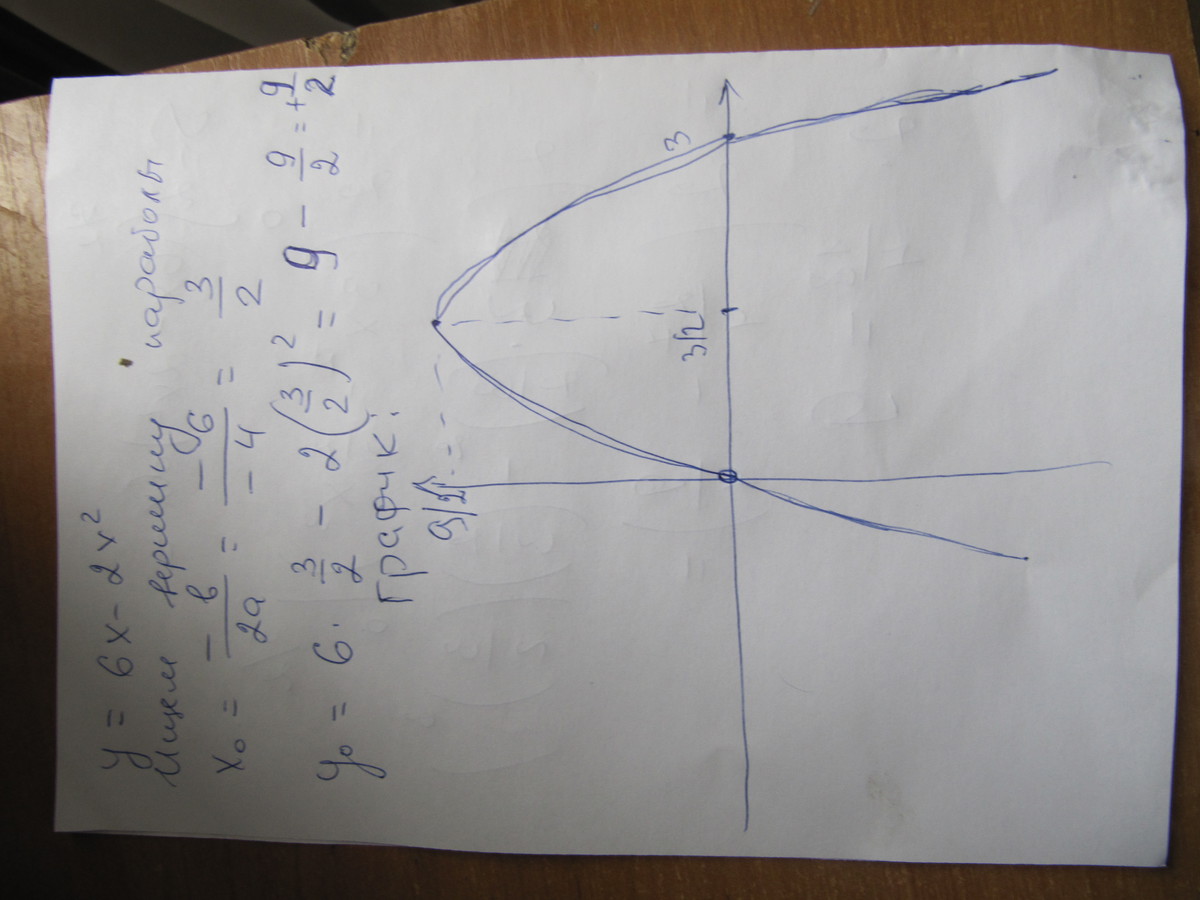 График парабола у=-2(х-1,5)²+4,5, вершина в точке (1,5;4,5), точки пересечения с осью ох (0;0) и (3;0)