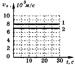 отображены графики скоростей двух космических аппаратов после их расстыковки