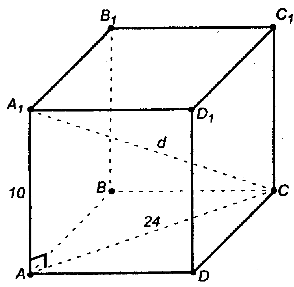 Основанием прямого параллелепипеда является ромб с диагоналями 12 см и 24 см а высота параллелепипеда ровна 7 см.Найти большую диагональ параллелипипеда