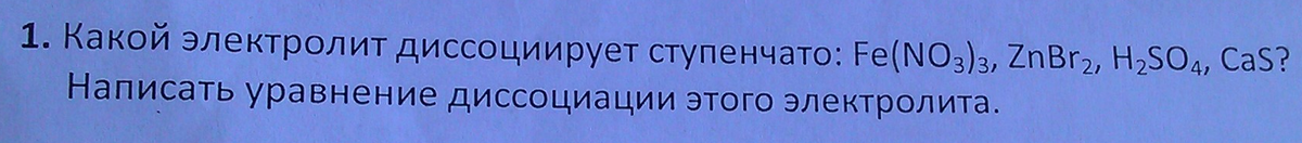 Какой электролит диссоциирует ступенчато? Написать уравнение диссоциации этого электролита:
