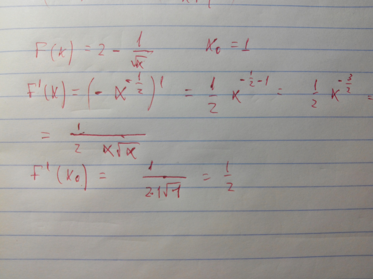 f(x0)= √1 - 1/2√1 * 1 все деленное на 1=√1 - 1/2√1
