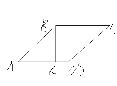 Мы видим, что в прямоугольном ΔАВД катет ВК в два раза меньше гипотенузы АВ, ВК противолежит углу А ⇒ угол А равен 30 градусов. Он и есть искомый угол.
