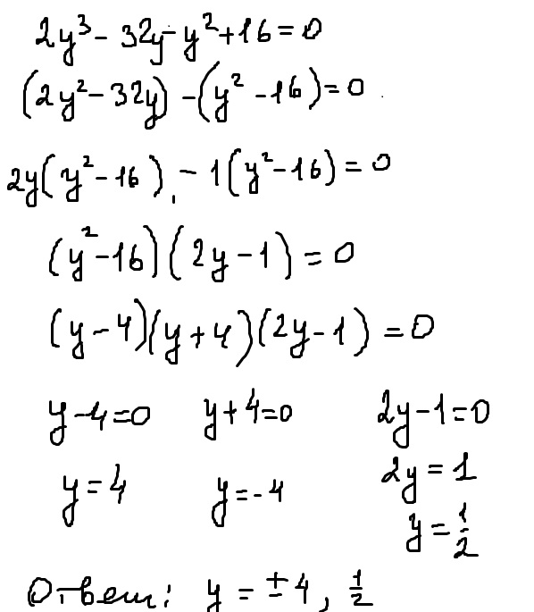 Два игрик в кубе минус тридцать два минус игрик в квадрате плюс шестнадцать равно ноль