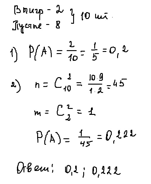 Из 10 билетов выигрышными являются 2.определить вероятность того ,что среди взятых на удачу билетов: