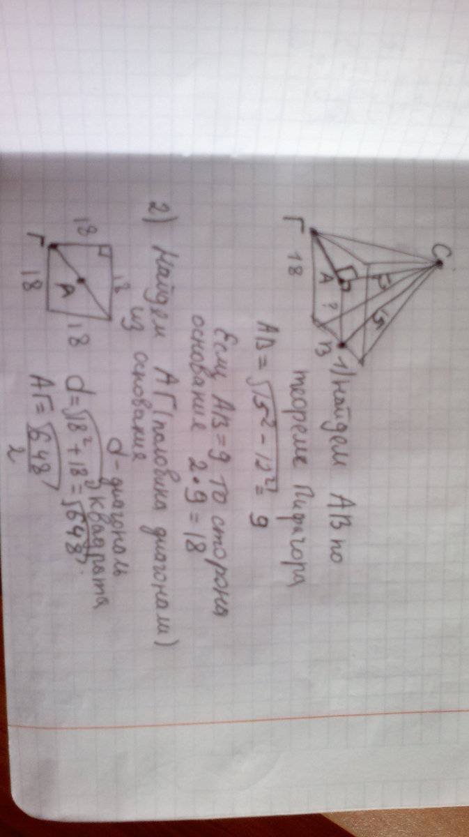 По условию нам сказано, что пирамида правильная четырёхугольная ⇒ в основании квадрат.