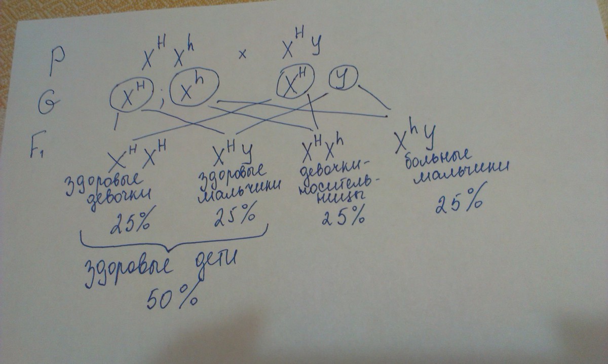 . то есть в их генах нет гена гемофилии. таким образом, вероятность рождения здоровых детей равна 50%