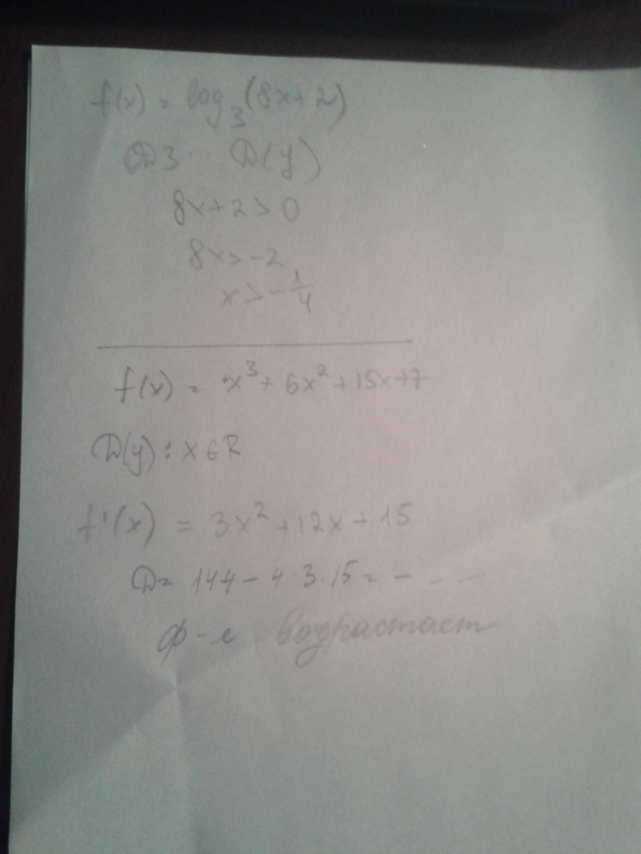 1)Найдите область определения функции:f(x)=log(3) (8x+x2 )