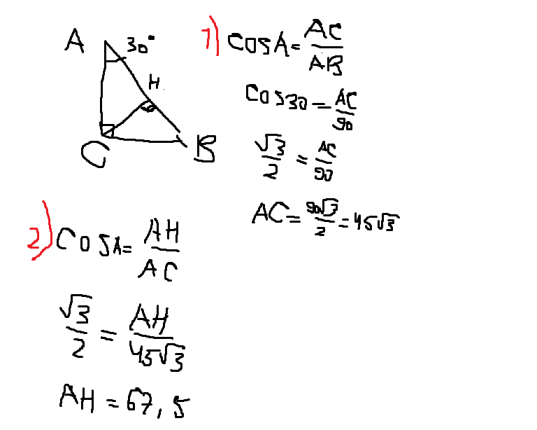 cos это отношение прилежащего катета к гипотенузе