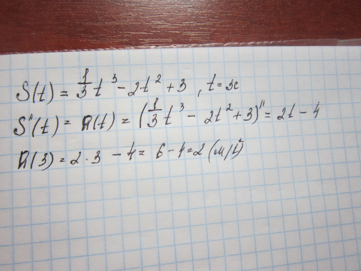 Зависимость пути от времени при прямолинейном движении точки задана уравнением s=1/3t(в кубе)-2t(в квадрате)+3.