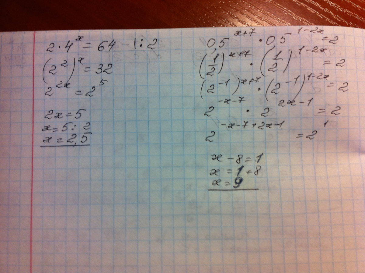 2^2х=64/2. 2^2х=2^5. 2х=5. Х=5/2. 2^(-(х+7)*2^(-(1-2х))=2^1.