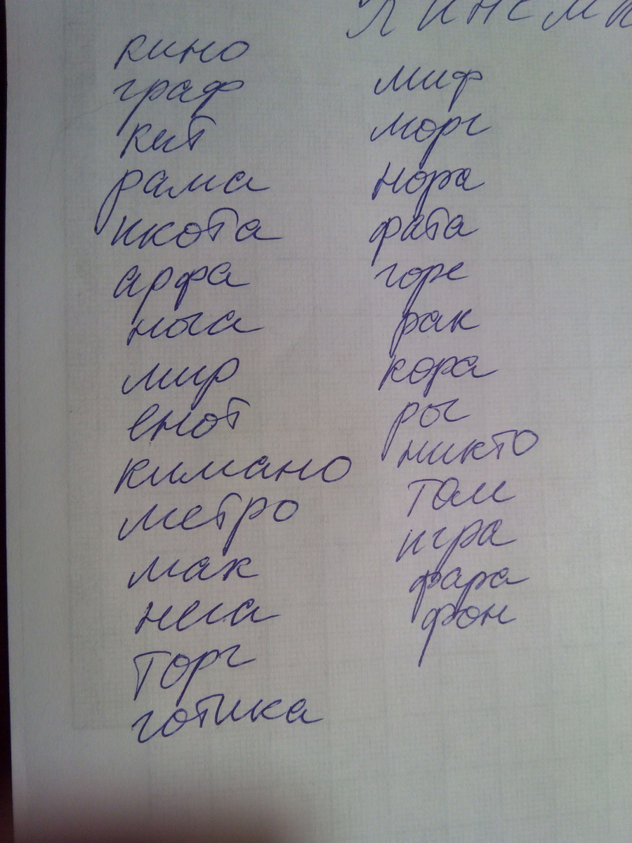 Кино,кимано,граф,мат,маг,морг,торг,торги,графика,графит,графин,трафик,Рафик,ник,никто,кто,там,торф,форт,форте,фонарик,фон,фарт,фара,фата,фагот,арфа,арка,актор,