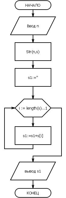2)построить блок схему которая меняет порядок цифр числа на обратный. например было 12345,стало 54321.