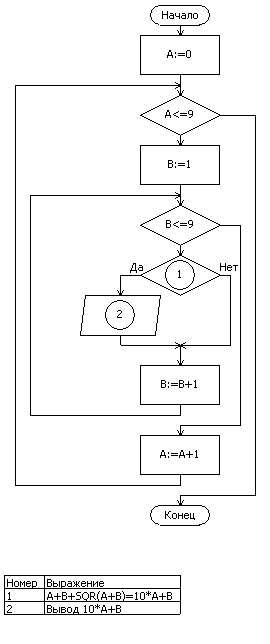 1)составить блок-схему поиска двузначных чисел,таких,что если к сумме цифр этого числа прибавить квадрат этой суммы,то получится это число.