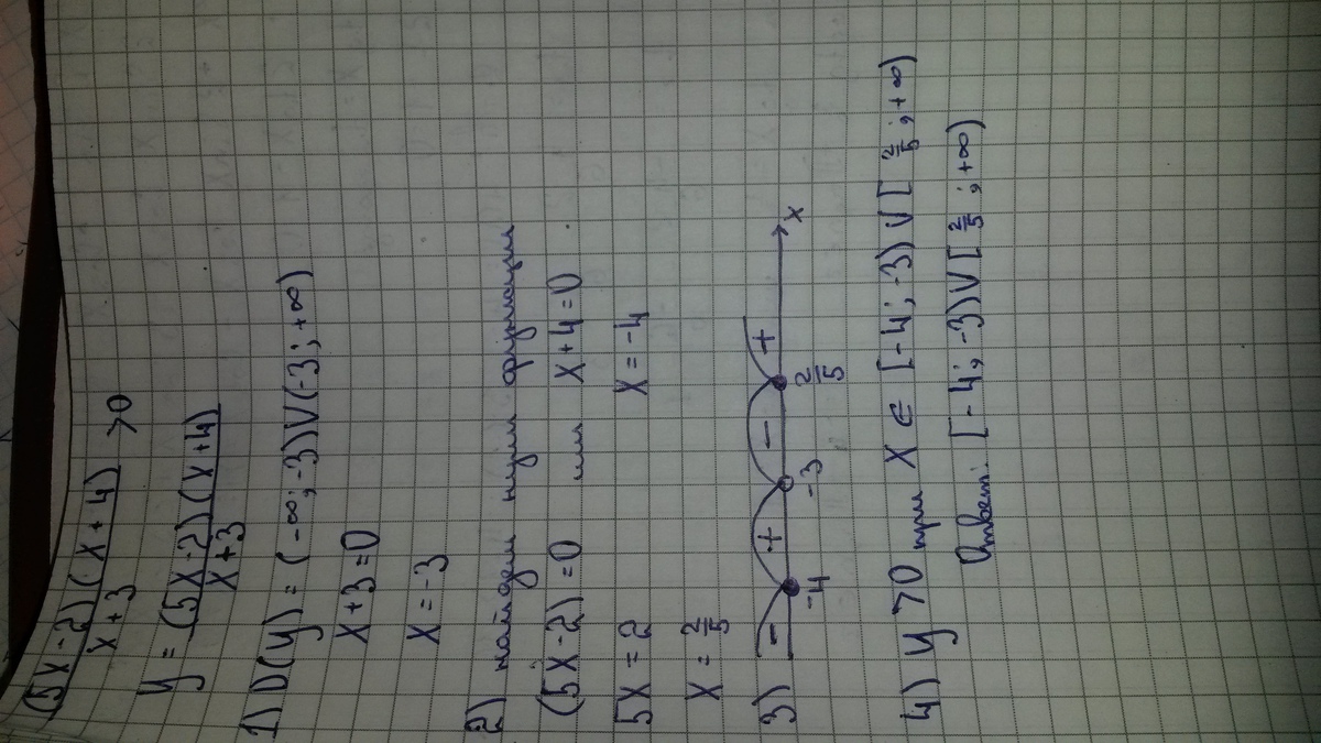 ПОМОГИТЕ ПОЖАЛУЙСТА!!! 1.Решить неравенство ((5x-2)(x+4))/x+3>0