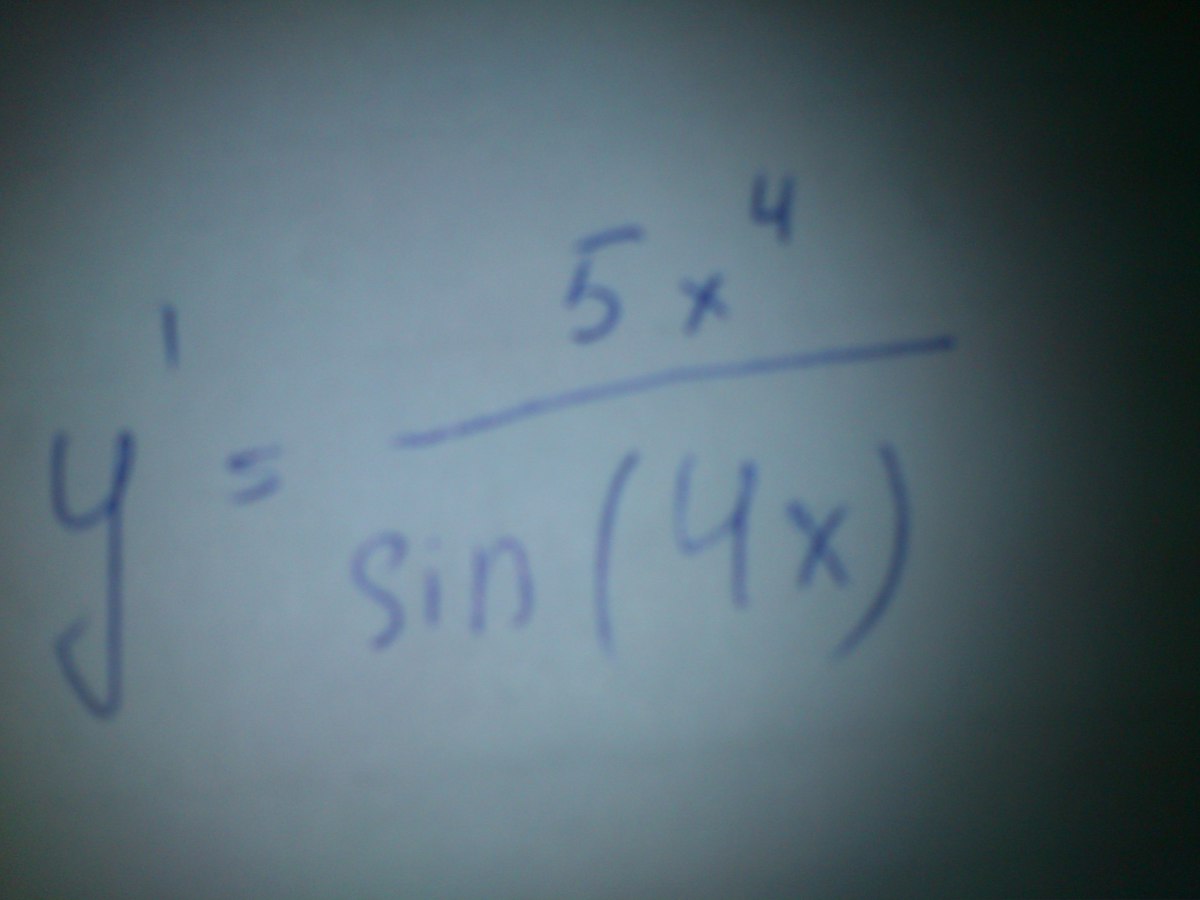 y=frac{5x^4}{sin4x}\\y'=frac{(5x^4)'*sin4x-5x^4(sin4x)'}{(sin4x)^2}=frac{20x^3*sin4x-5x^4*(4cos4x)}{sin^24x}
