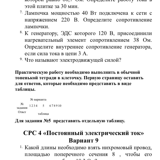 Задача 1): P=(U^2)/R; R=(U^2)/P=(220^2)/40=48400/40=1210 Ом. Ответ: 1210 Ом.