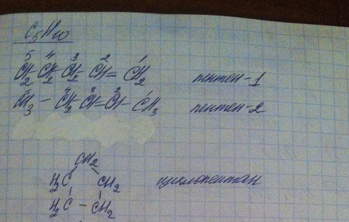 2.Составить формулы и дать названия изомерам состава C5H10.