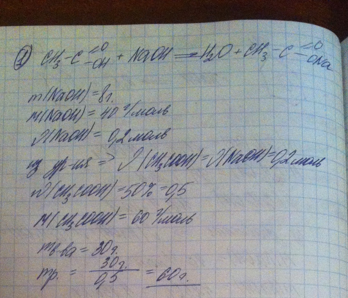1.Какое количество 50% раствора этановой кислоты потребуется для нейтрализации 8 грамм гидроксида натрия?