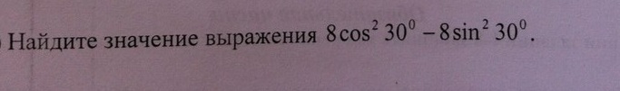 =8(cos^2(30)-sin^2(30))=8cos60=8*1/2=4