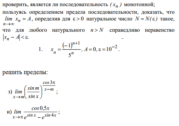 ![displaystylelim_{xto pi}frac{cos 0.5x}{e^{sin x}-e^{sin 4x}}=[t=pi-x]=lim_{tto0}frac{sin 0.5t}{e^{sin t}-e^{-sin 4t}}=\=lim_{tto0}frac{0.5t}{(1+t)-(1-4t)}=lim_{tto0}frac{0.5t}{5t}=0.1 displaystylelim_{xto pi}frac{cos 0.5x}{e^{sin x}-e^{sin 4x}}=[t=pi-x]=lim_{tto0}frac{sin 0.5t}{e^{sin t}-e^{-sin 4t}}=\=lim_{tto0}frac{0.5t}{(1+t)-(1-4t)}=lim_{tto0}frac{0.5t}{5t}=0.1](https://tex.z-dn.net/?f=displaystylelim_%7Bxto+pi%7Dfrac%7Bcos+0.5x%7D%7Be%5E%7Bsin+x%7D-e%5E%7Bsin+4x%7D%7D%3D%5Bt%3Dpi-x%5D%3Dlim_%7Btto0%7Dfrac%7Bsin+0.5t%7D%7Be%5E%7Bsin+t%7D-e%5E%7B-sin+4t%7D%7D%3D%5C%3Dlim_%7Btto0%7Dfrac%7B0.5t%7D%7B%281%2Bt%29-%281-4t%29%7D%3Dlim_%7Btto0%7Dfrac%7B0.5t%7D%7B5t%7D%3D0.1)