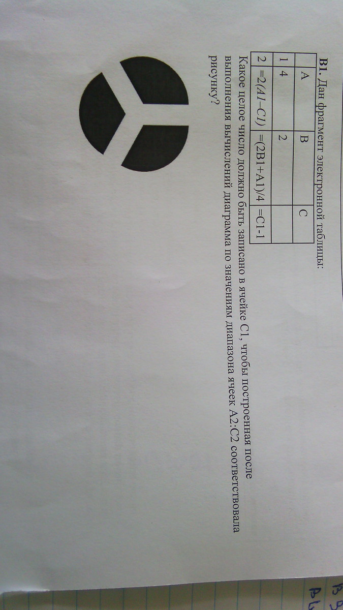 - значение в ячейке C1. Из диаграммы следует, что значения ячеек A2, B2 и C2 равны. Значит,