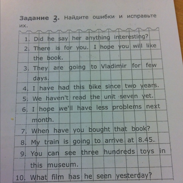 old 5) We haven't read Unit Seven… 6) fewer problems 7) when did