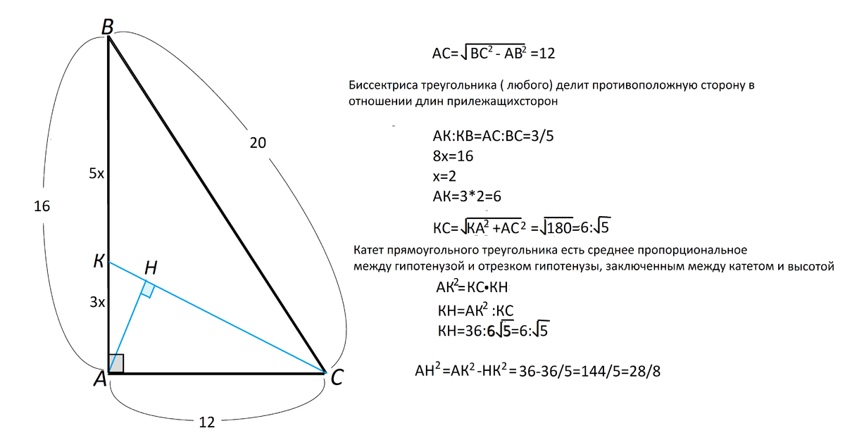 ⇒ АК:КВ=АС:ВС=12:20=3/5