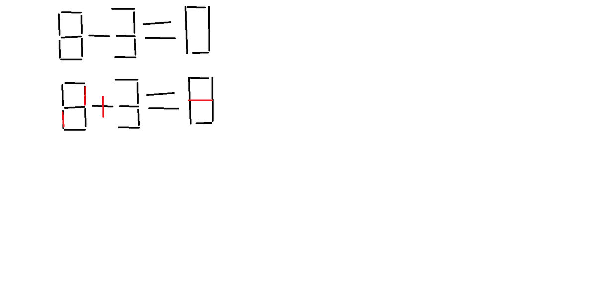 Помогите!!!!!! Пожалуйста помогите рушить пример со спичками: переложите 2 спички чтобы равенство стало верным- 8-3=0