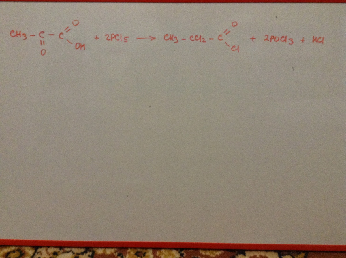 = СH3-C(Cl)2-COOCl (2,2-дихлорпропановая кислота) +2POCl3 + HCL