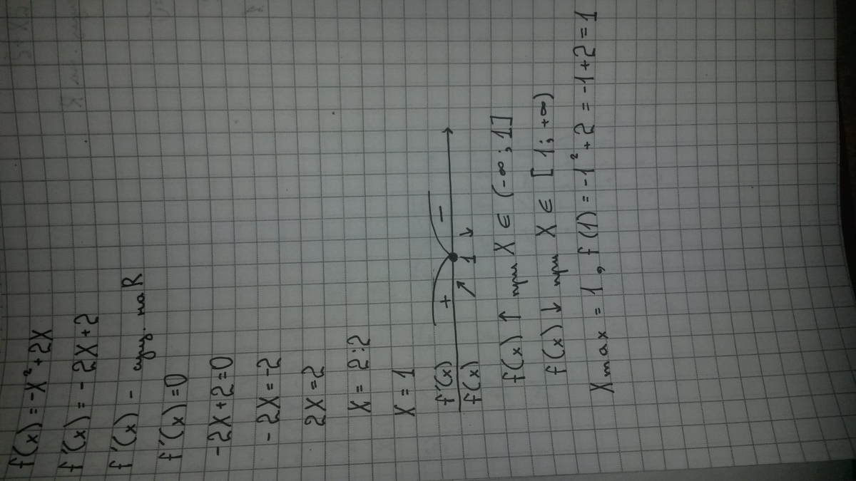 Помогите пожалуйста решить очень нужно ) исследуйте функцию на монотонность и экстремум: f(x) = -x^2+2x