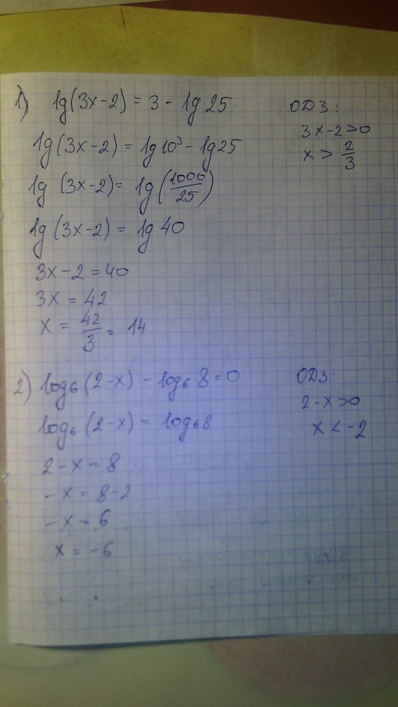 2. log(по основанию 6)(2-x)-log(по основанию6)8=0