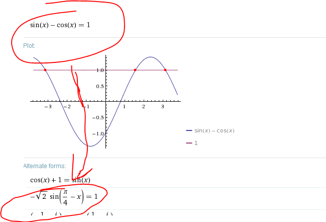 √2sin(x-π/4)=1 (это все равно что -√2sin(π/4-x))