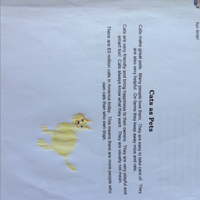 Кошки делают великих домашних животных. Многие люди любят их. Они просты в уходе. Они также очень полезны. На фермах они держаться подальше мышей и крыс.