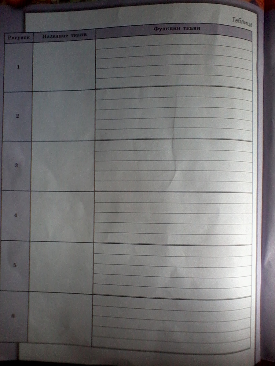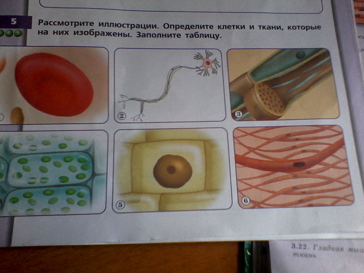 Рассмотрите иллюстрации. Определите клетки и ткани, которые на них изображены. Заполните таблицу.