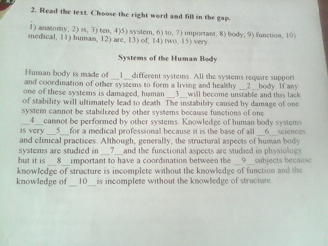 1 - ten 2 human 3 body 4 system 5 important 6 medical 7 anatomy 8 very 9 two 10 function