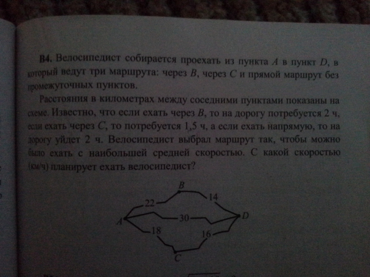 В4. Велосипедист собирается проехать... задача на фотографии.