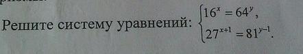 система 2 ⁴х = 2⁶у и 3³х+1= 3⁴у-4; система 4х=6у и 3х+1=4у-4: система х=3/2у и 3х+1=4у-4 ; вместо х во второе уравнение подставить 32у ⇒ 92у-4у=-3 ⇒12у=-3 ⇒ у=-6; х=32*(-6)⇒ х=-9 ответ: (-9; -6)