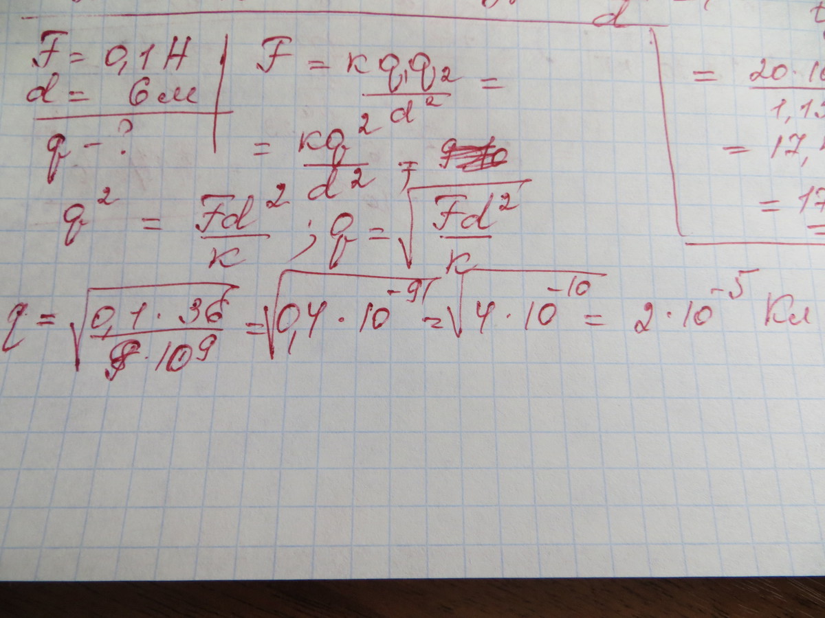 два однакових заряди взаємодіють у вакуумі із силою 0,1 Н. Відстань між зарядами дорівнюе 6 м. Знайти величину цих зарядів