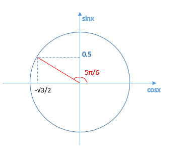 С помощью тригонометрического круга находим решение, принадлежащее отрезку [π/2;π]