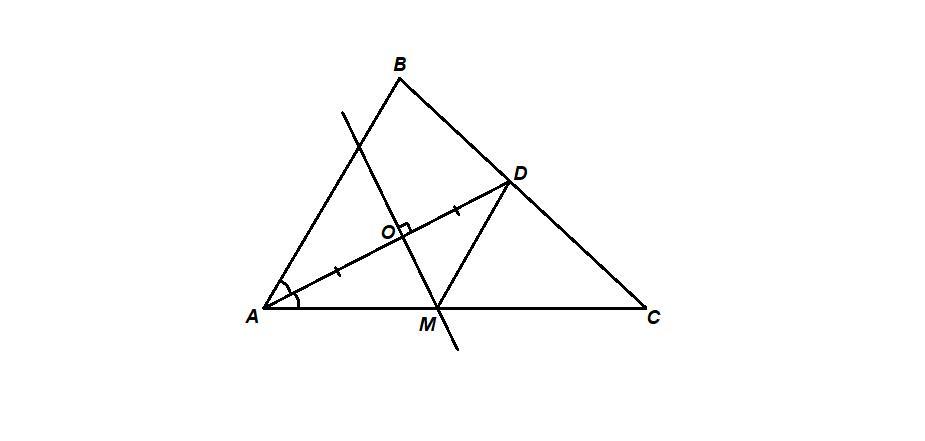 Прямая, проходящая через середину биссектрисы AD треугольника ABC и перпендикулярная к AD, пересекает сторону AC в точке М. Докажите, что MD||AB